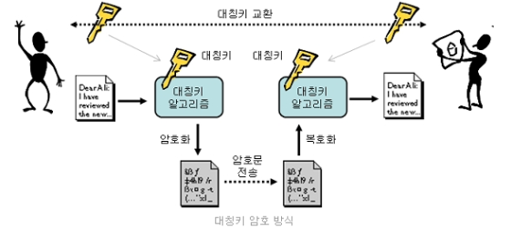 암호화, 복호화 시에 같은 암호키를 사용한다.